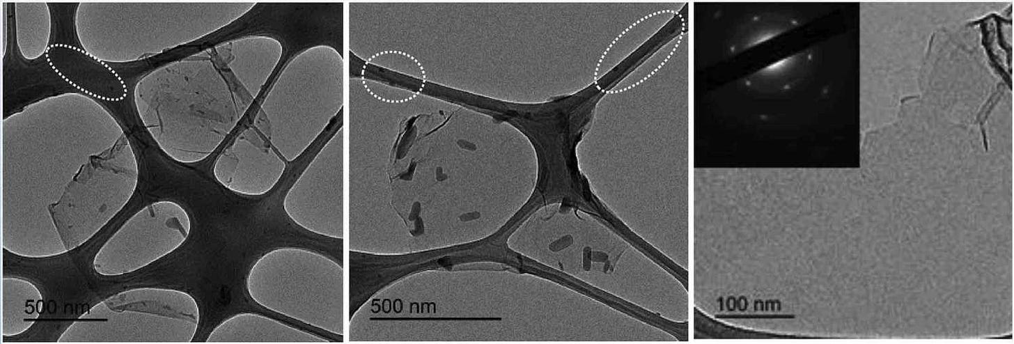 TEM images from literature, at two magnifications (ref. 200 and 1000 nm).